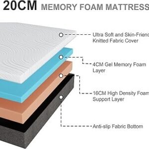 Twirest Memory Foam Mattress – Medium Firm Cooling Mattress in a Box, 18/20cm Thick, Breathable Washable Cover, Fiberglass-Free
